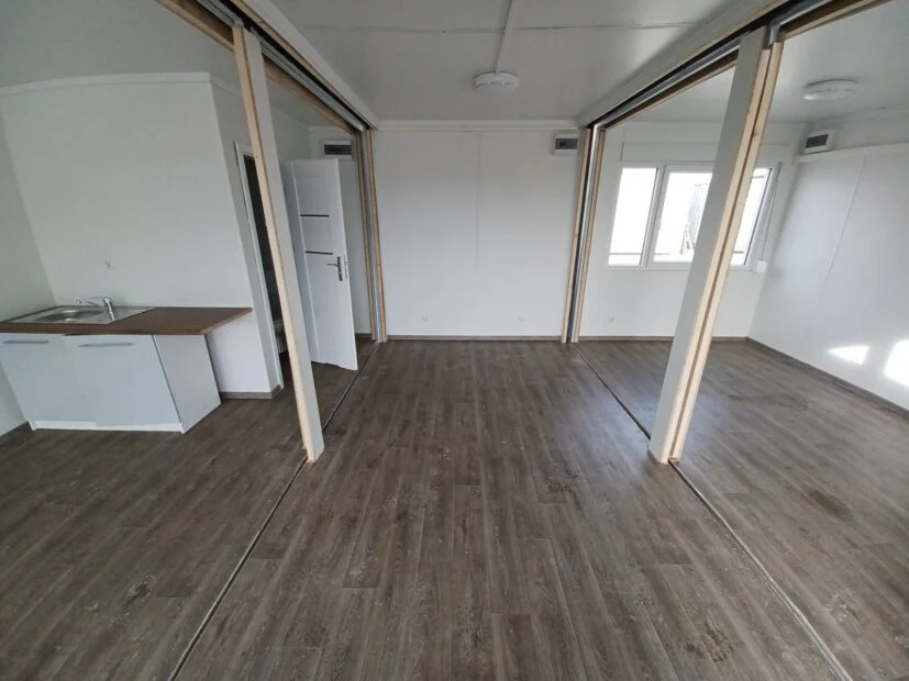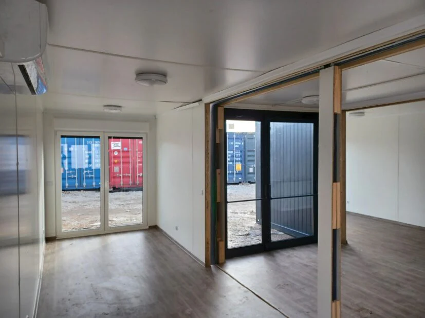 BUNGALOW CON INSTALACIONES SANITARIAS (50M2) CONJUNTO DE OFICINA Y SALA DE TRIO CONTENEDORES EN FORMA DE LETRA “U” AIRE ACONDICIONADO DE BAÑO (50 m²) Edificio de oficinas y viviendas compuesto por un conjunto de 3…