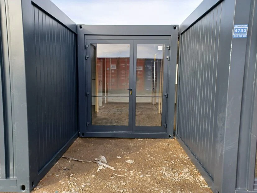 CONJUNTO DE OFICINA Y SALA DE TRIO CONTENEDORES EN FORMA DE LETRA “U” AIRE ACONDICIONADO DE BAÑO (50 m²)
